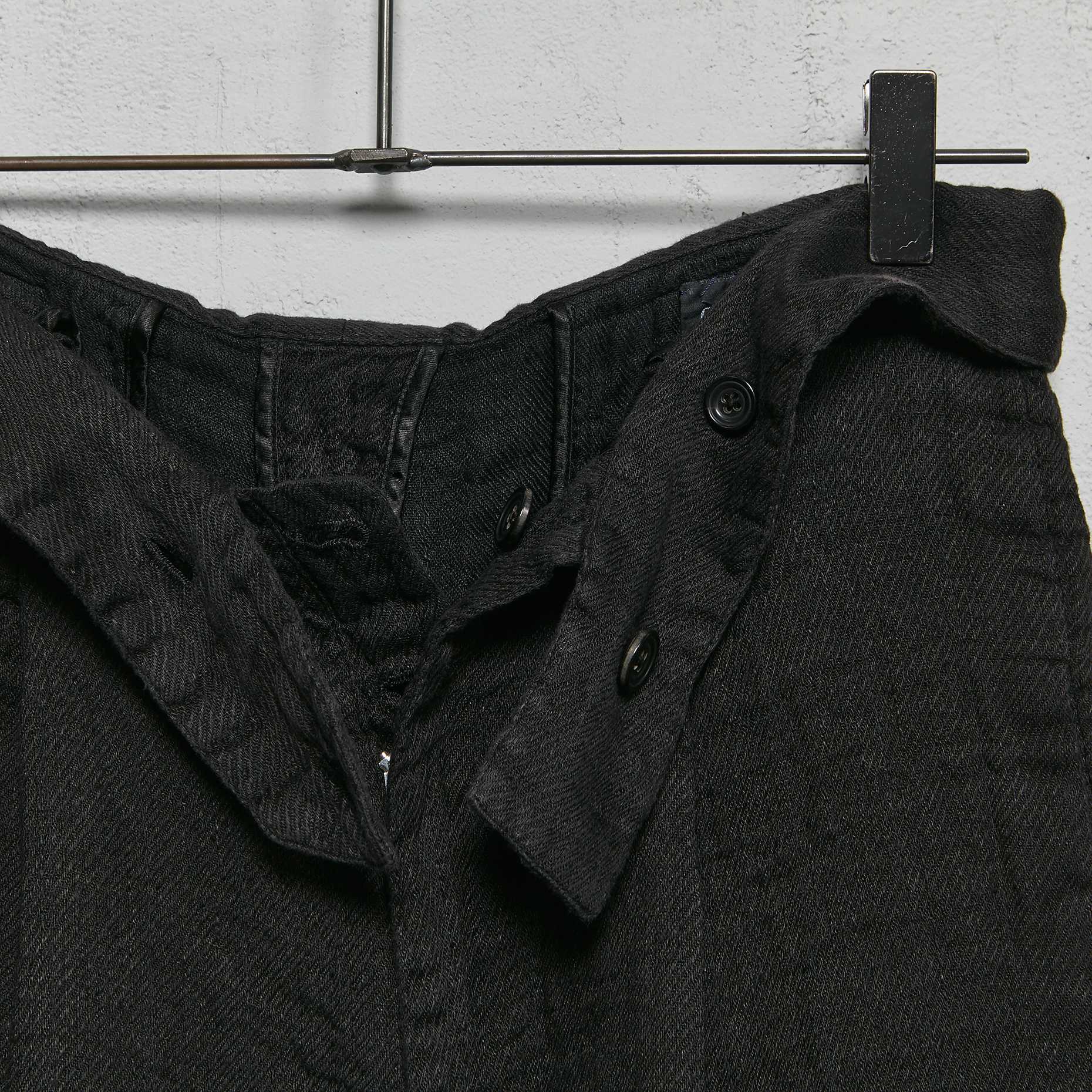 Features hidden back cinch, nickel aluminum zipper made especially for Small by YKK in Japan, interior taped seam finishing, hand sewn taped hemlines, and generous 2.5 cm seam allowances on all major fitting seams to allow the trouser to be altered and let out a full two sizes larger than its original cut for added investment value.