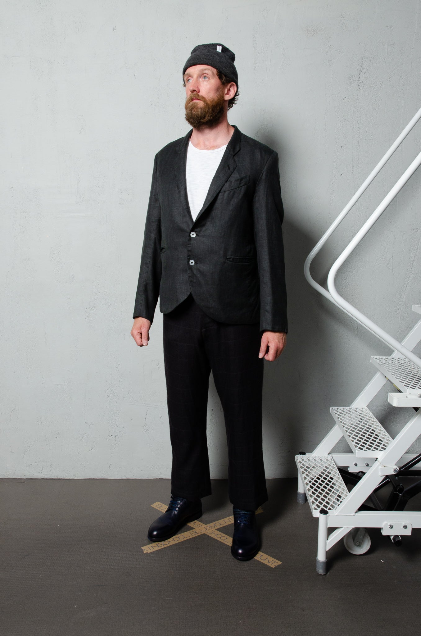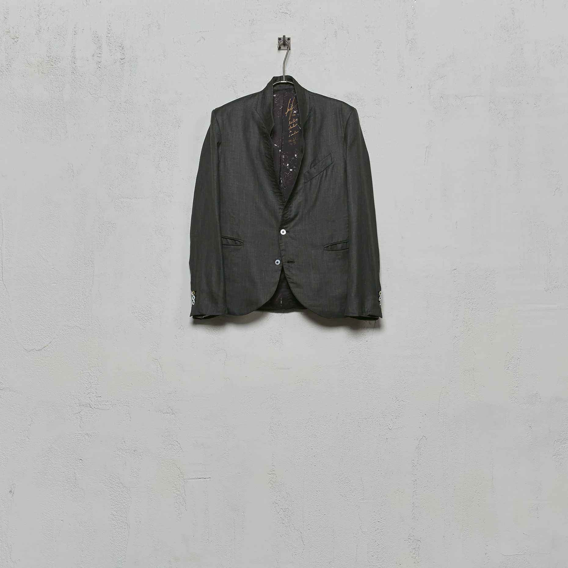 Geoffrey B. Small single-breasted jacket in hand washed Piacenza 1733 luxury Alashan Breeze cashmere, linen, and silk fabric with Como pure silk Botticelli print lining.