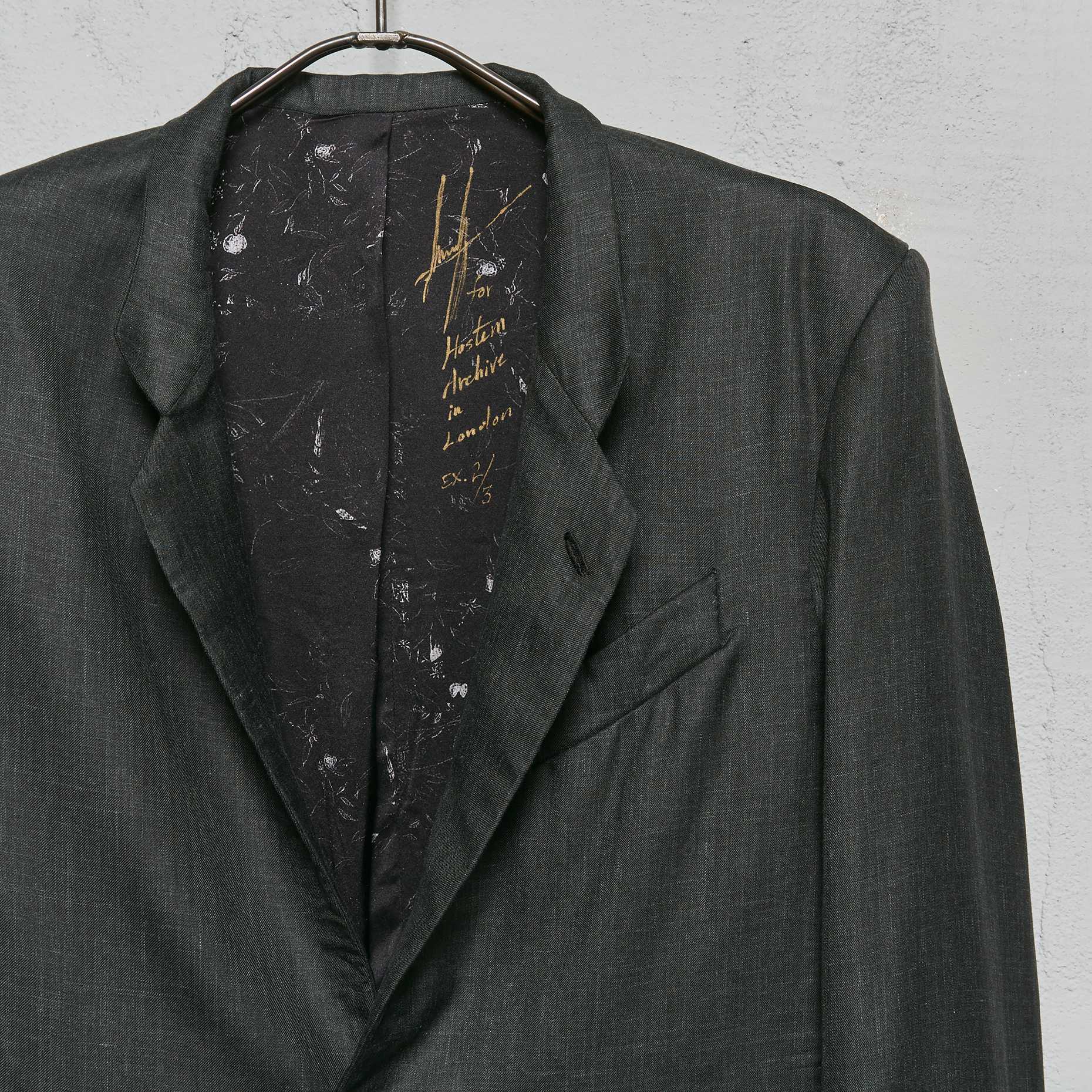 Created from Small's original early 1980's Italian reproduction padded-shoulder dropped-notch deep-V lapel double vent jacket pattern from Small's extensive tailoring research, cut in an ultrasoft Alashan Breeze cashmere, linen, and silk 170-gram fabric woven exclusively for Small in Pollone, Biella, by Fratelli Piacenza 1733, combined with pure Como silk raso satin Botticelli floral print lining along with sleeve linings in striped viscose woven by Cervotessile in Gallarate.