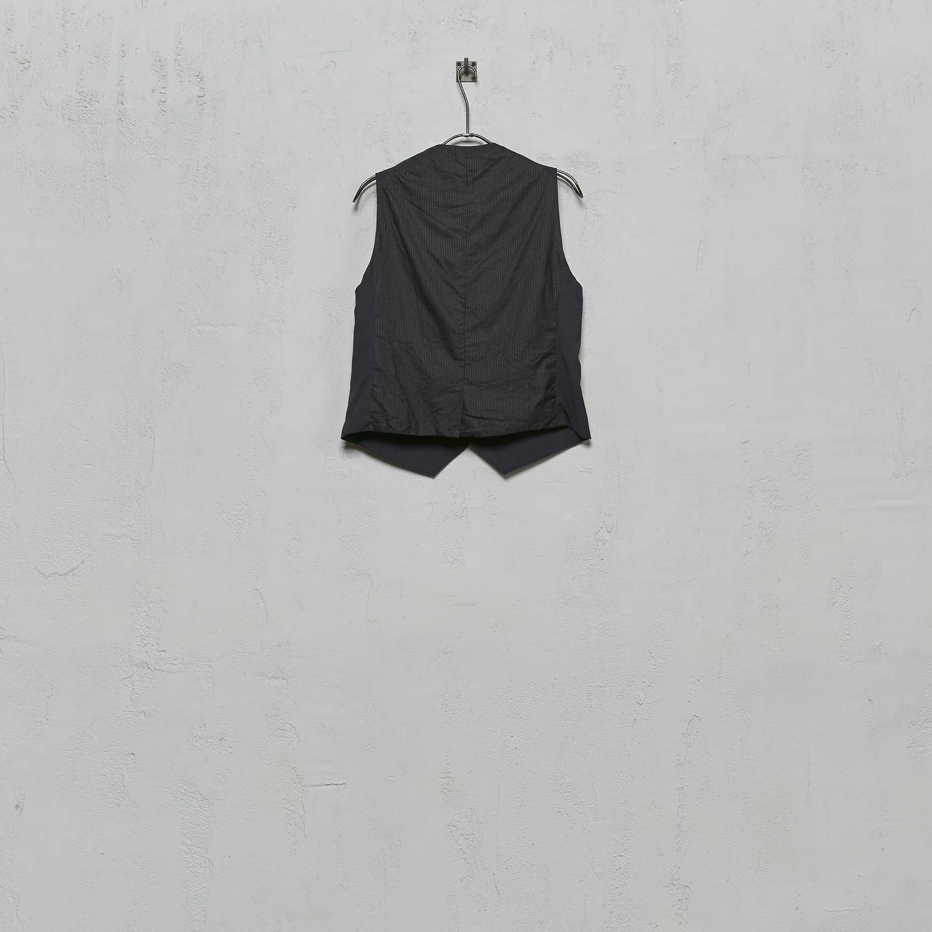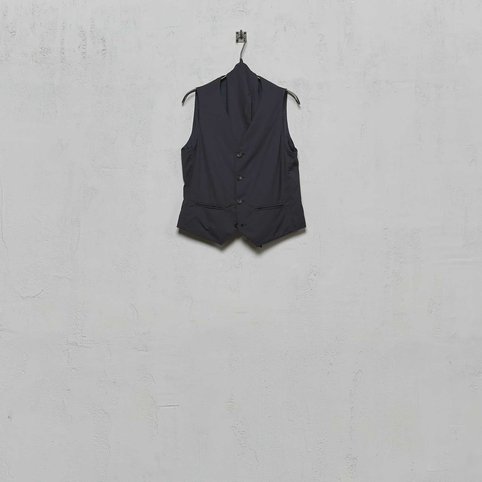 Geoffrey B. Small vest and scarf in hand washed Piacenza 1733 Super 130s 'Mouliné' superlight pure wool fabric with Luigi Parisotto Super 120s double-twist pure cotton stripe lining.
