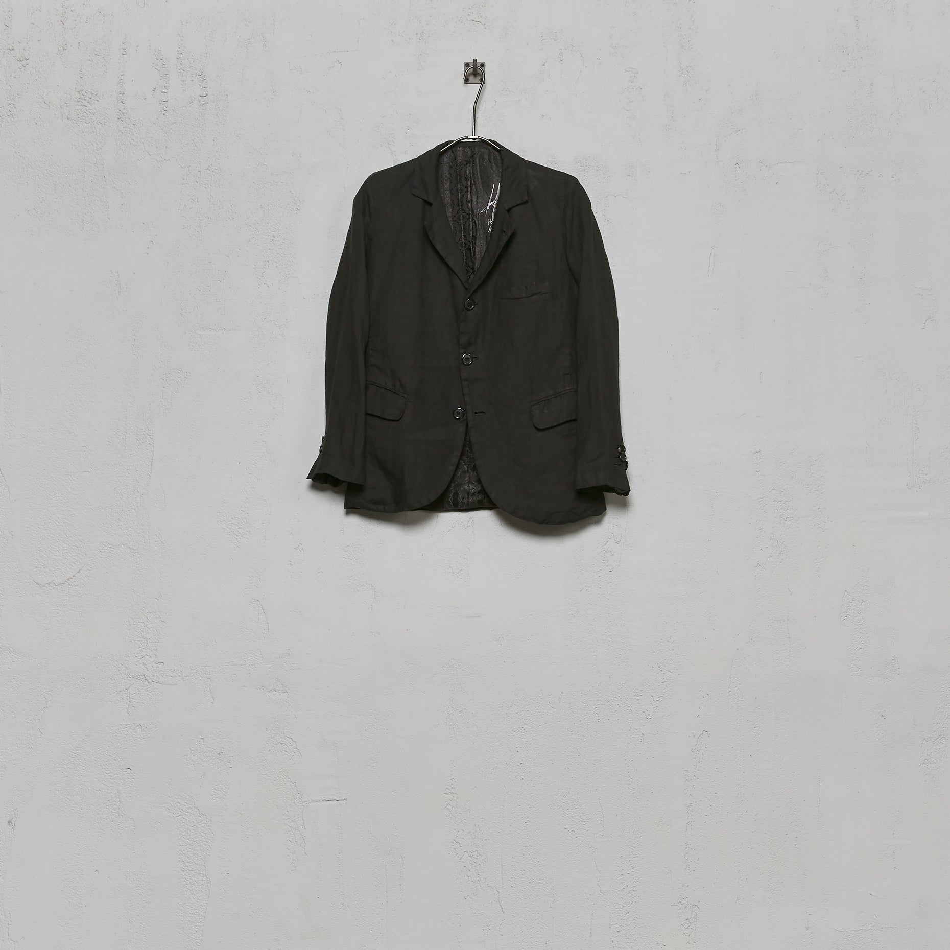 Created from Small's original modified 19th century notch-lapel jacket pattern from Small's extensive tailoring research, cut in super light pure linen from Varese, Italy, combined with a patchwork lining of pure viscose jacquard fabrics woven by Ezio Ghiringhelli.