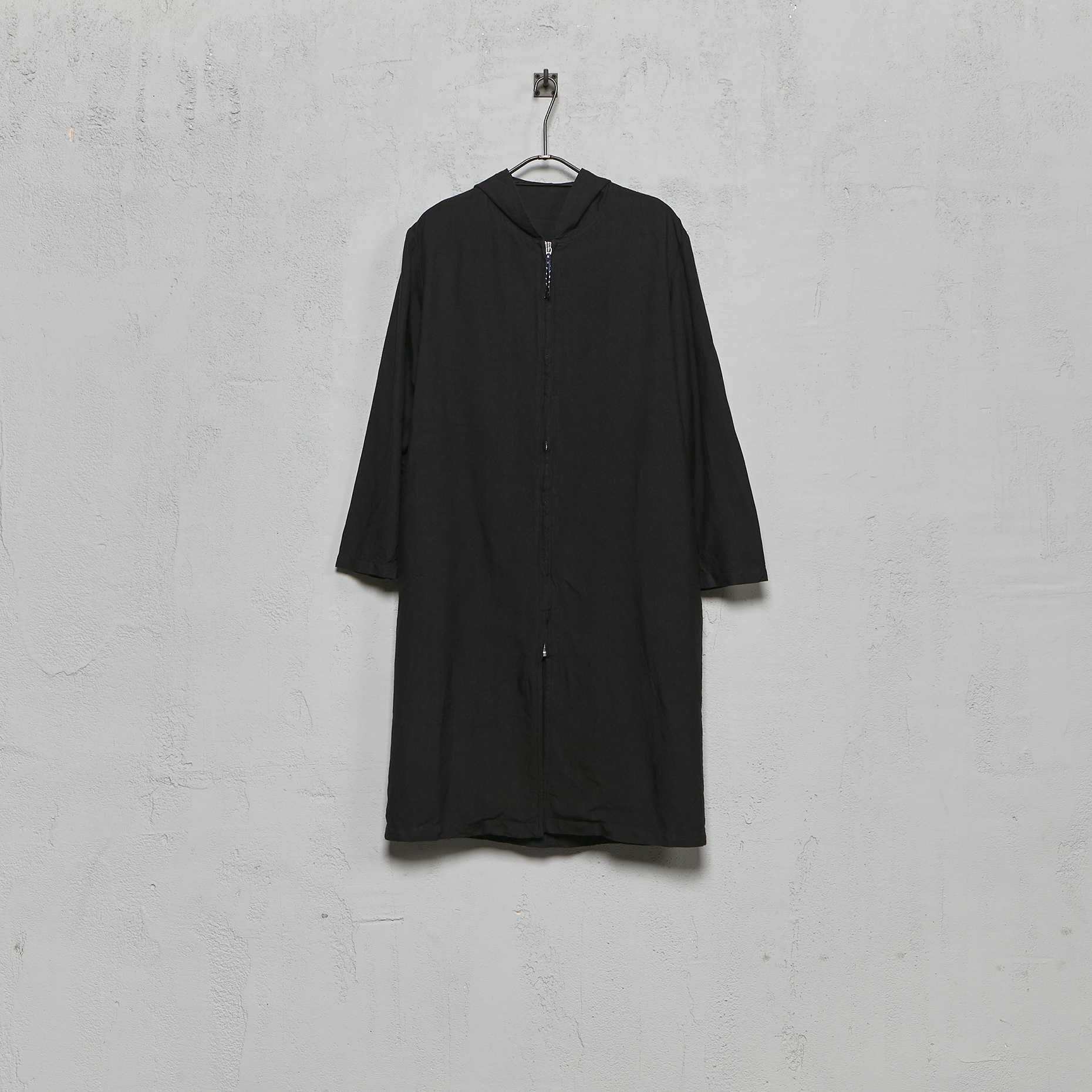 Geoffrey B. Small women's long hooded zipper coat in Tessitura Bertazzon silk.