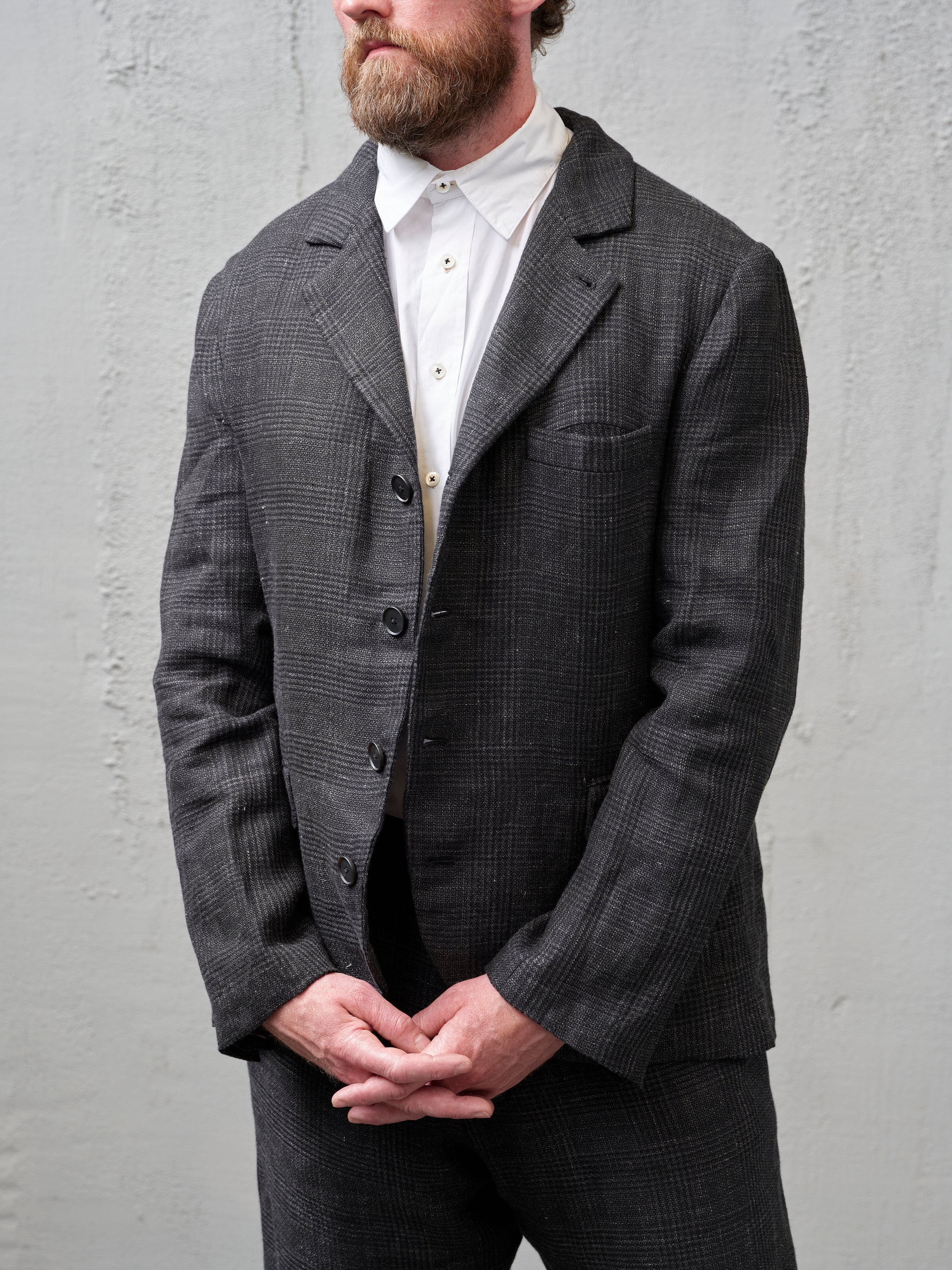 Geoffrey B. Small men's classic jacket in 'Armageddon' wool & linen plaid.