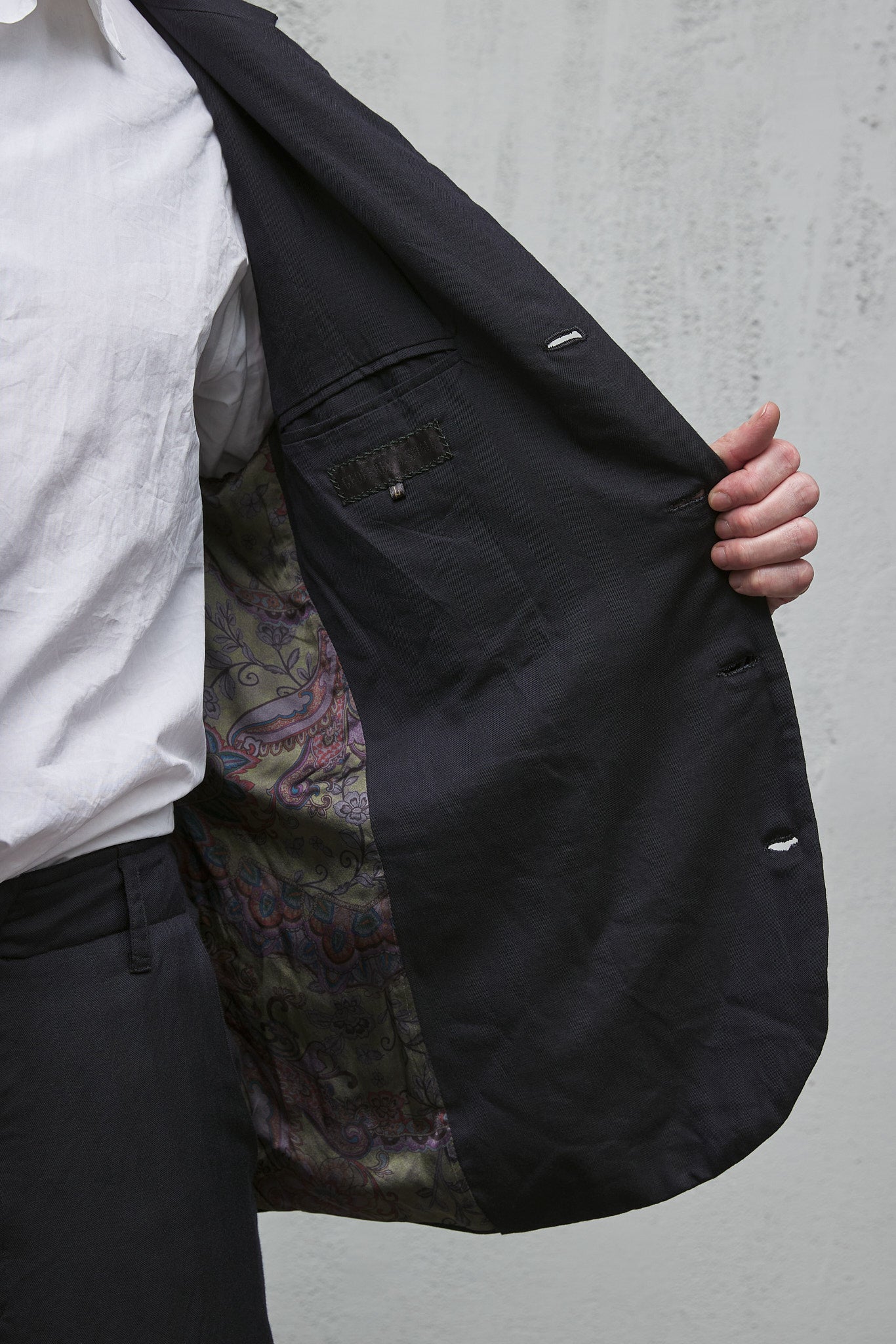 Created from Small's extensive tailoring research, cut by hand using superlux, pure cashmere for Small in Pollone Biella by the oldest woolen mill in the world, Fratelli Piacenza 1733 Spa, and part-lined with pure silk raso satin print shirting made in Como by the Brenna family. The pure Alashan cashmere fabric is treated by hand in Small's workrooms in Cararzere Venezia for extra aging, drape and softness.