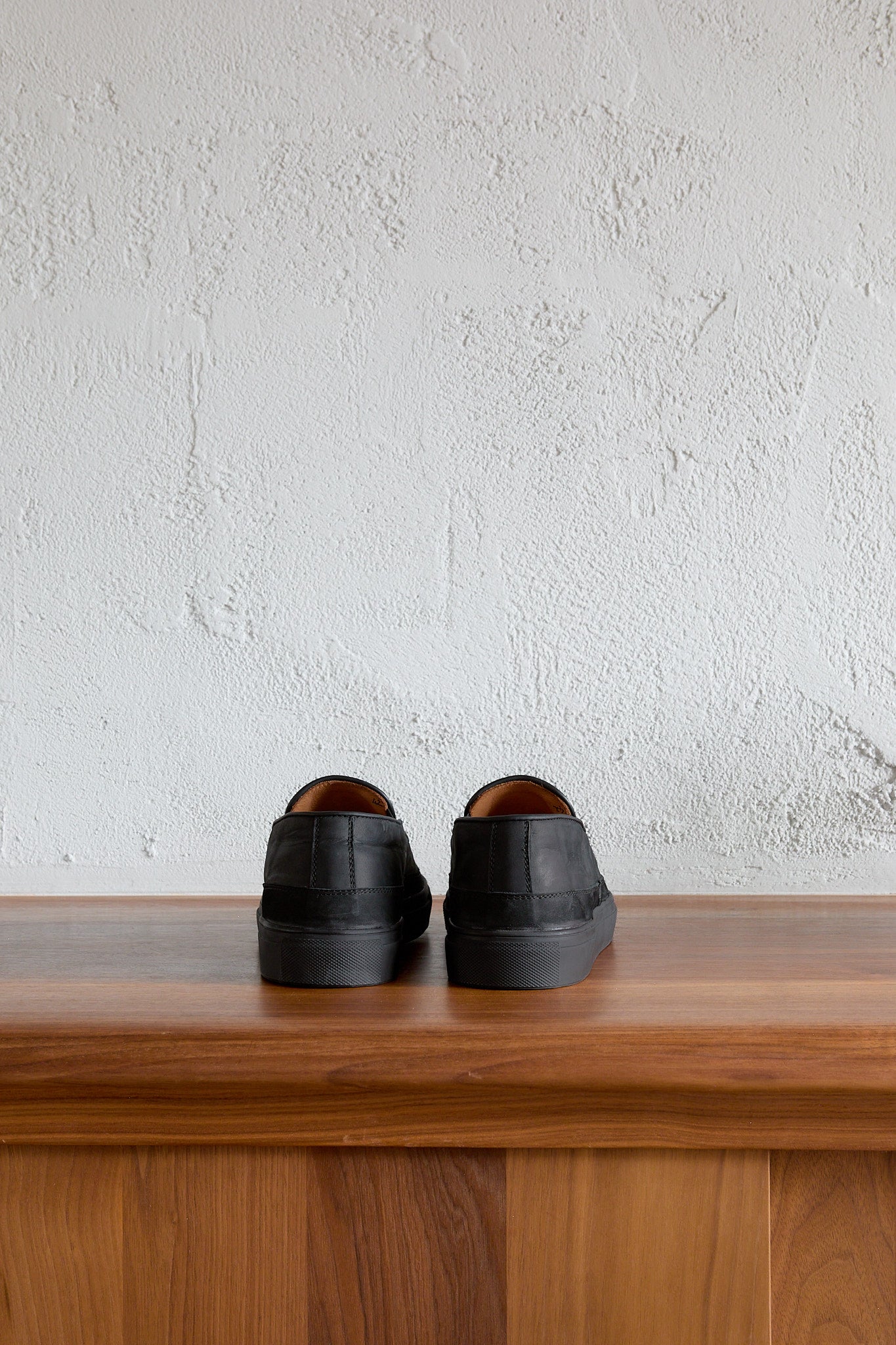 Geoffrey B. Small men's slip on shoe with bumper sole in black leather.