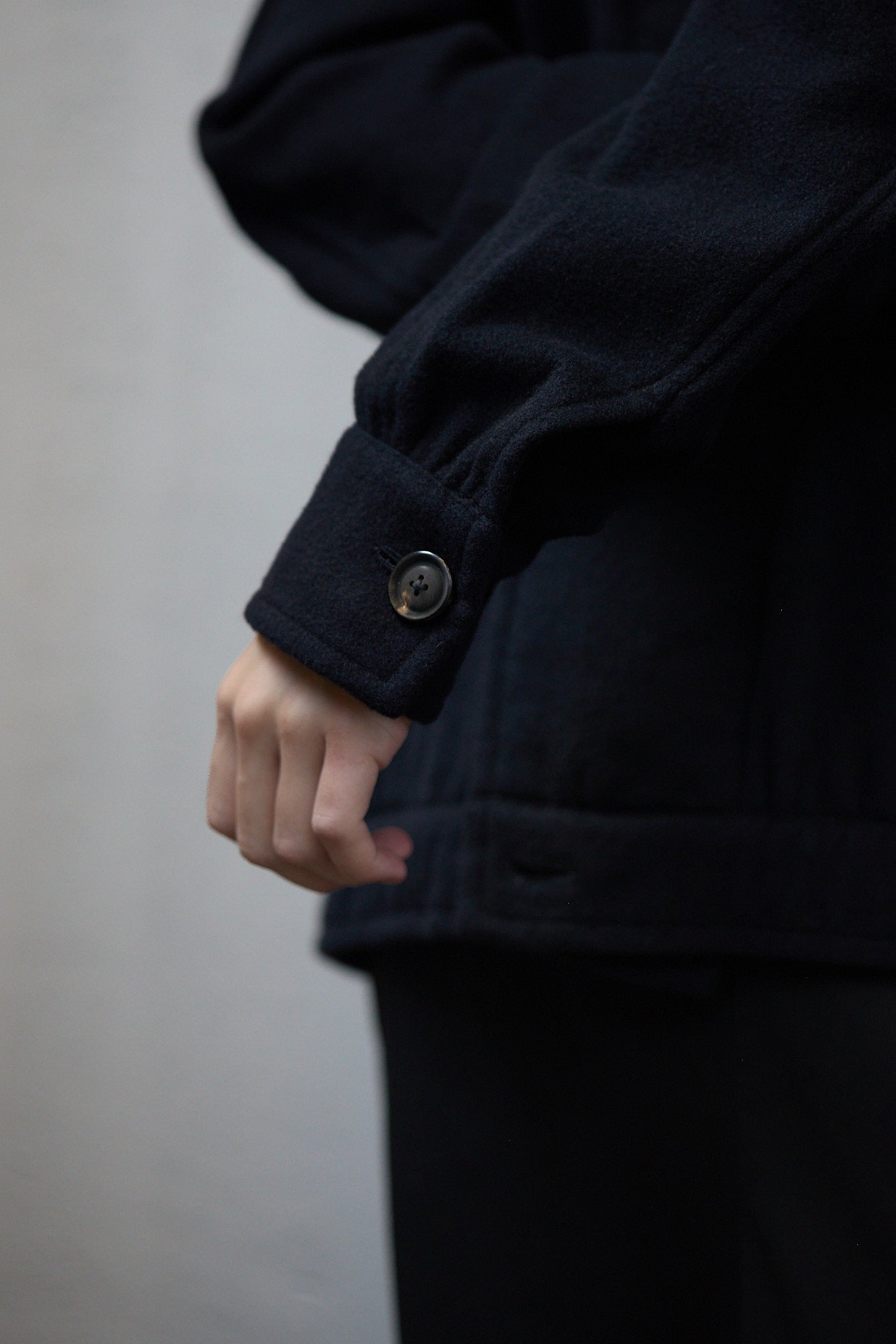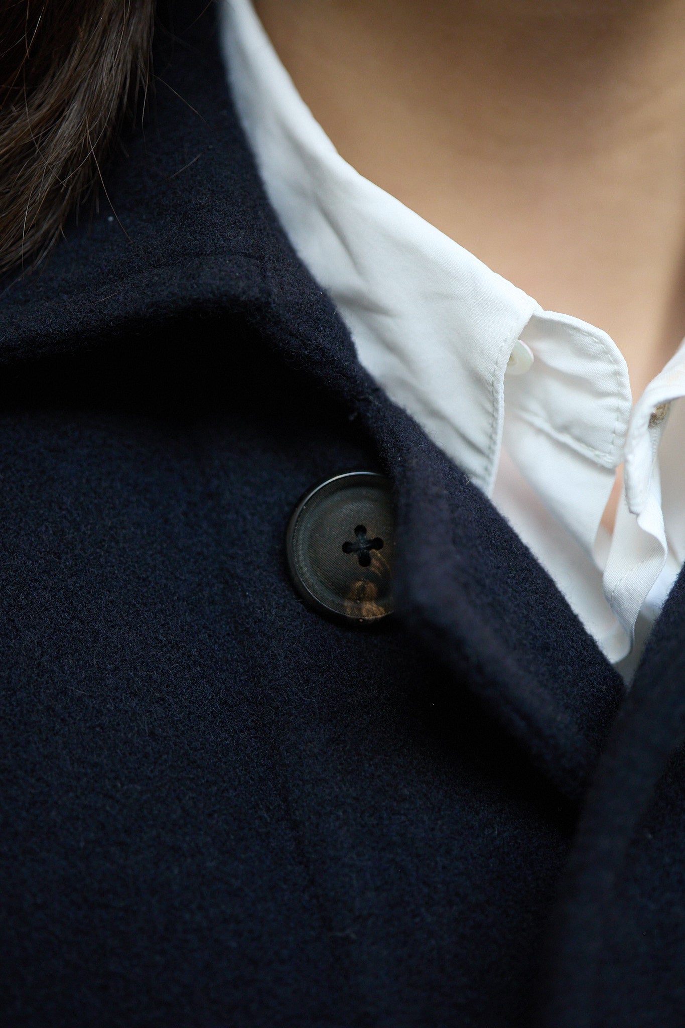 Featuring a fly-front closure, belted waistband hem, and single-needle topstitching, the jacket also includes real-horn buttons by the Fontana family of Parma.