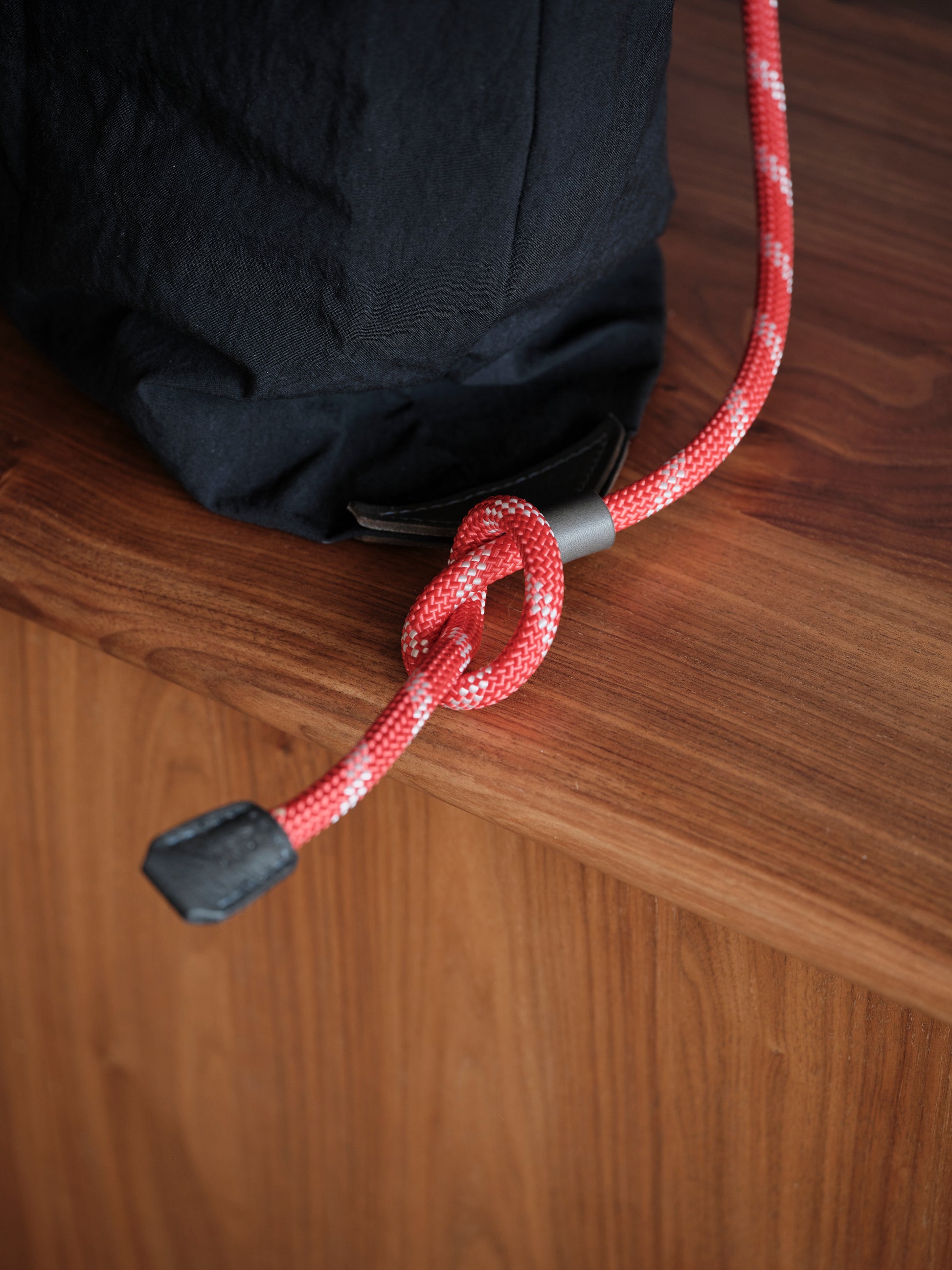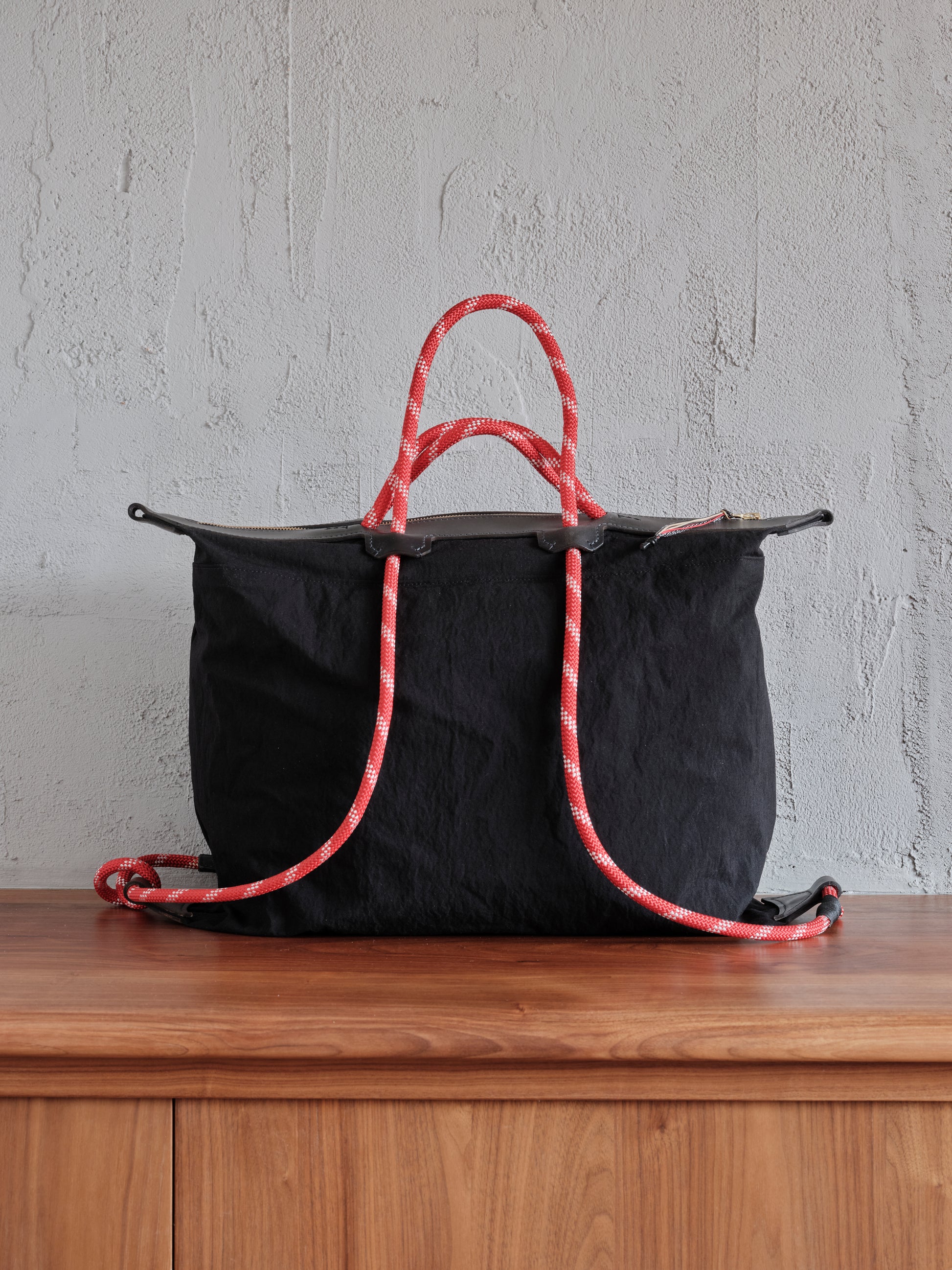 Feature rope cord strap, heavy gauge Riri zip and japanese kombu fabric